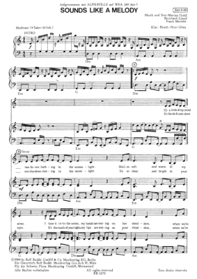 Sounds like a Melody - Sheet Music for Piano and Voice Alphaville