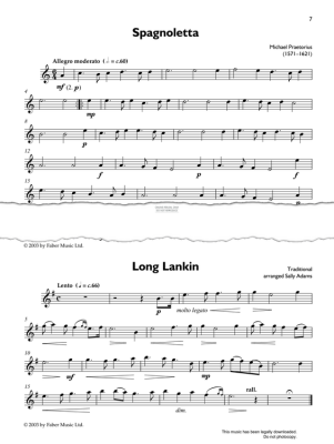 Spagnoletta, composed by Michael Praetorius and arranged by Sally Adams and Nigel Morley for flute with piano accompaniment.