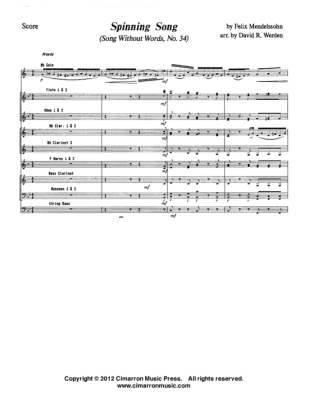 Spinnerlied (Lieder ohne Worte) - Sheet Music for op. 67 No. 4 Solo part in Bb + Concert Band Felix Mendelssohn Bartholdy (Noten-Scan arr. D. Werden)