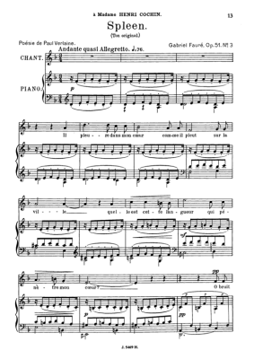 Spleen Op.51 No.3 - Sheet Music for Medium Voice and Piano Gabriel Fauré