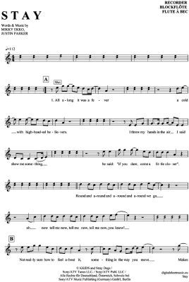 Stay (feat. Mikky Ekko) - Sheet Music for recorder Rihanna