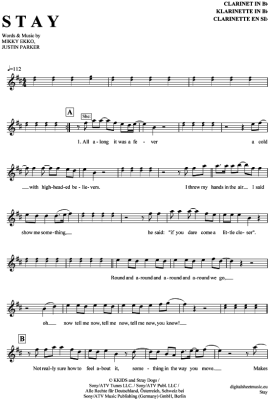 Stay (feat. Mikky Ekko) - Sheet Music for clarinet in B flat Rihanna