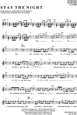 Stay the night - Sheet Music for Keyboard James Blunt