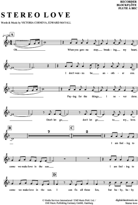 Stereo love - Sheet Music for recorder Edward Maya feat. Vika Jigulina