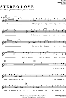 Stereo love - Sheet Music for transverse flute Edward Maya feat. Vika Jigulina