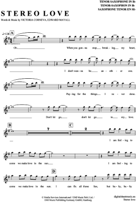 Stereo love - Sheet Music for Tenor Saxophone Edward Maya feat. Vika Jigulina