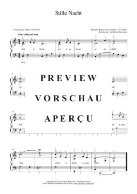 Eine zarter, nicht zu schwieriger Klaviersatz dieses vielleicht berühmtesten aller Weihnachtslieder. - HINWEIS: Derselbe Satz ist auch in B-Dur erhältlich. Ebenfalls erhältlich ist außerdem ein einfacher zweistimmiger Klaviersatz in C-Dur.
