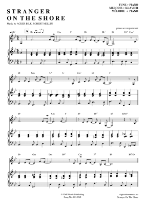 Stranger On The Shore - Sheet Music for Voice with Piano Accompaniment Acker Bilk