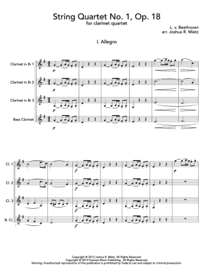String Quartet No. 1, Mvt. 1 - Sheet Music for Clarinet Quartet Ludwig van Beethoven