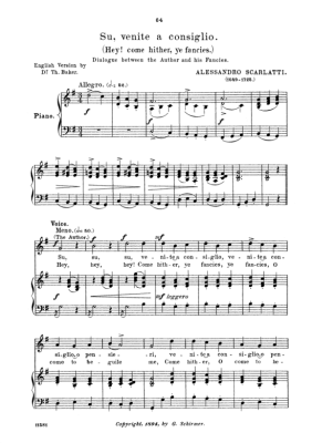 Su,venite a consiglio - Sheet Music for High Voice and Piano Alessandro Scarlatti