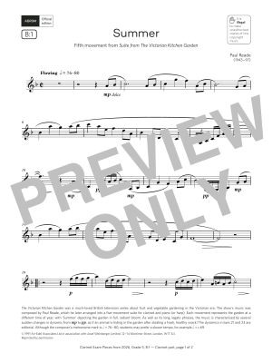 Summer (Grade 5, list B1, from the ABRSM Clarinet Syllabus from 2026) - Sheet Music for Paul Reade
