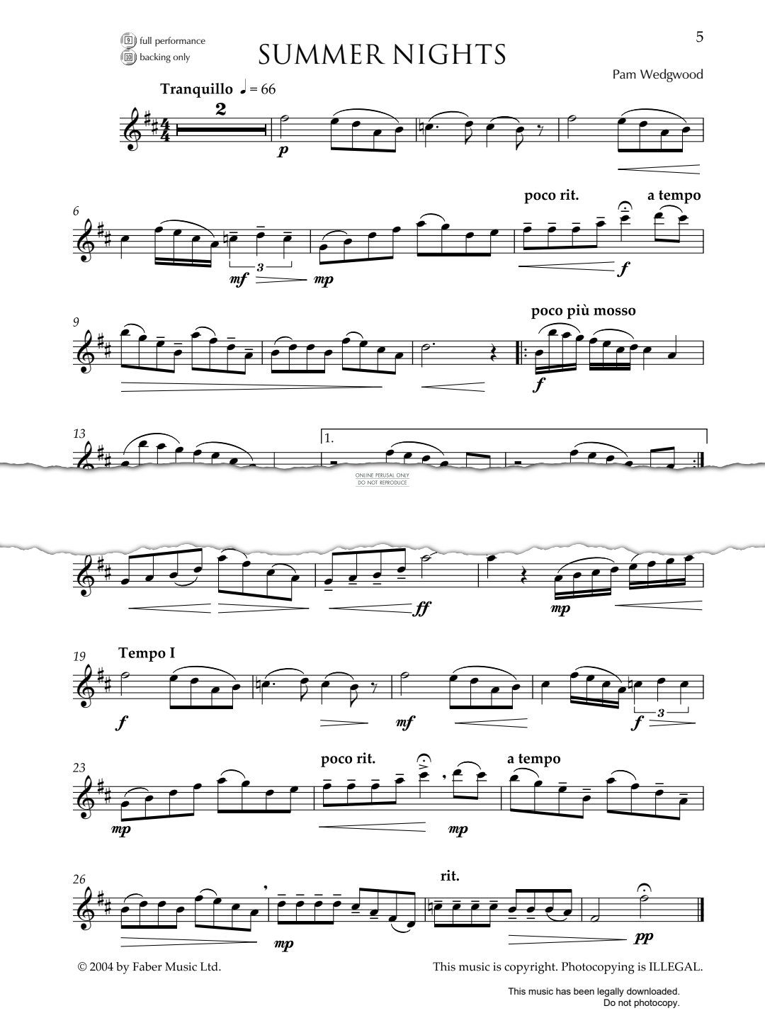 Summer Nights, written by Pam Wedgwood for alto saxophone and piano accompaniment in digital sheet music format.