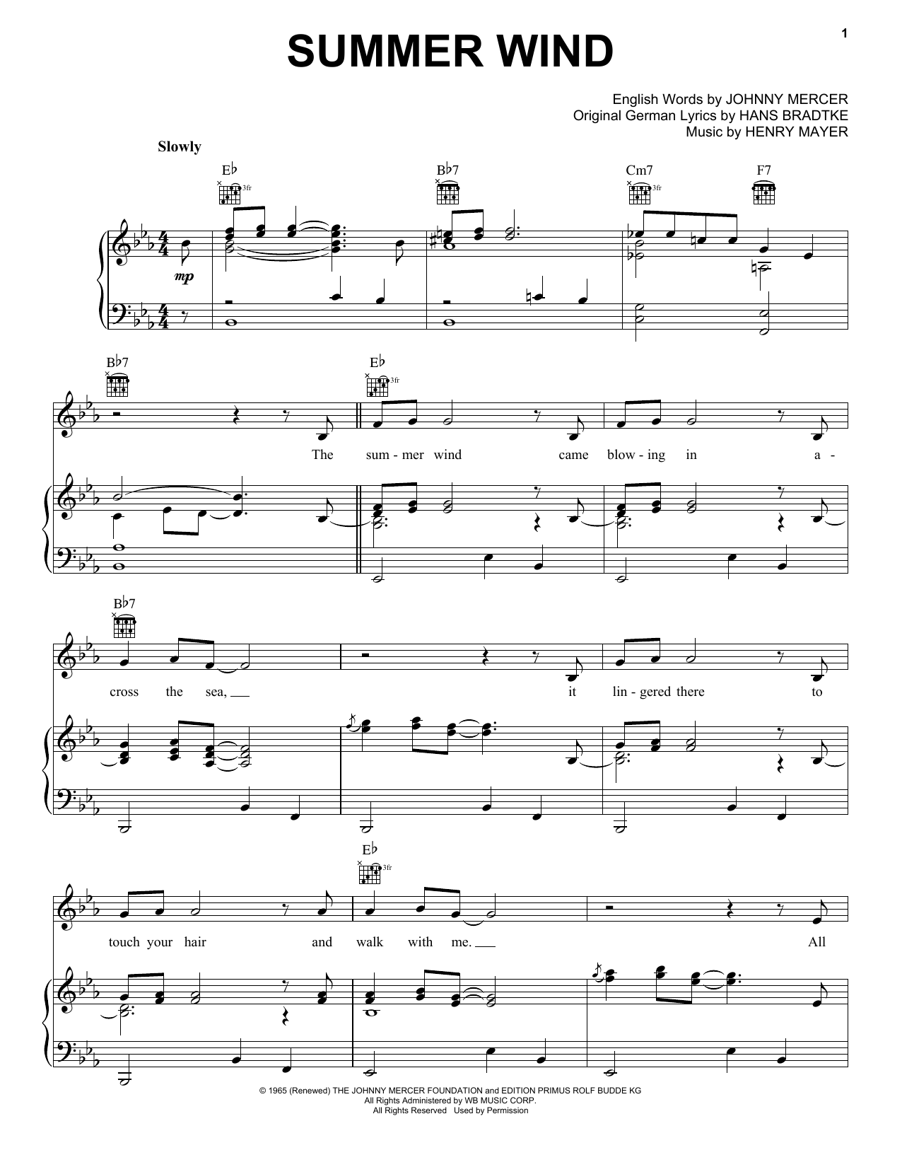 Summer Wind (Piano, Vocal & Guitar Chords (Right-Hand Melody))