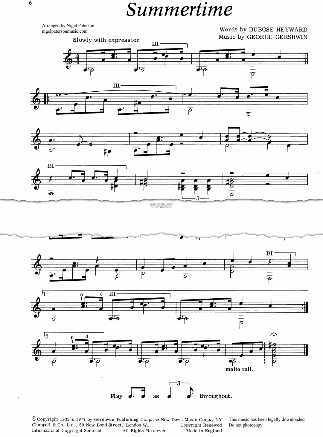 Summertime (from PORGY AND BESS®) - Sheet Music for George Gershwin, Du Bose Heyward, Dorothy Heyward, Ira Gershwin, Nigel Paterson