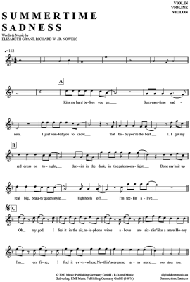 Summertime Sadness - Sheet Music for violin Lana del Rey