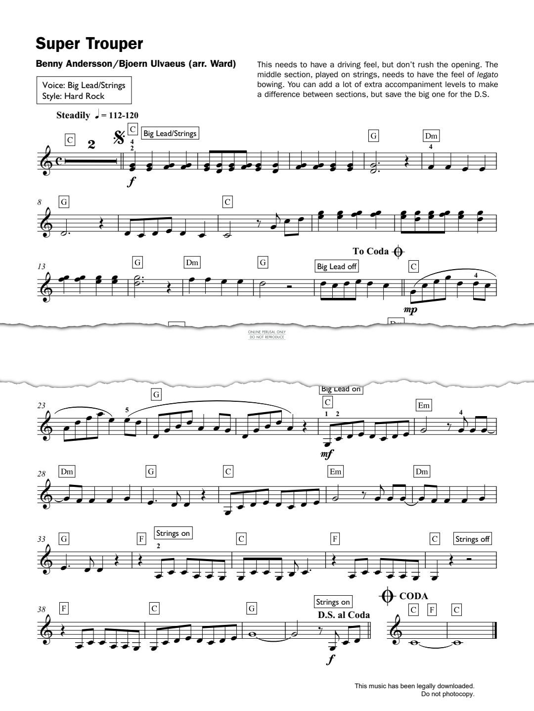 Super Trouper, composed by Benny Andersson and Björn Ulvaeus and arranged by Jeremy Ward for easy electronic keyboard in digital sheet music format.