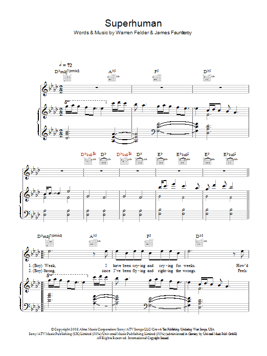 Superhuman (Piano, Vocal & Guitar Chords)