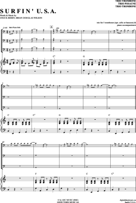 Surfin USA - Sheet Music for Trombone Trio + Piano Beach Boys