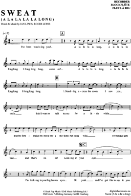 Sweat (A la la la la long) - Sheet Music for recorder Mehrzad / Mark Medlock