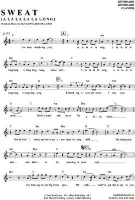 Sweat (A la la la la long) - Sheet Music for Keyboard Mehrzad / Mark Medlock