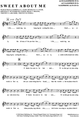 Sweet about me - Sheet Music for Alto Saxophone Gabriella Cilmi