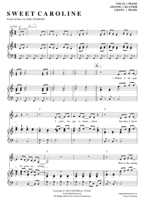 Sweet Caroline - Sheet Music for Piano and Voice Neil Diamond