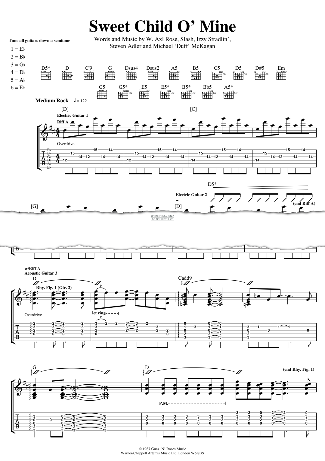Sweet Child O' Mine - Sheet Music for Guns N' Roses