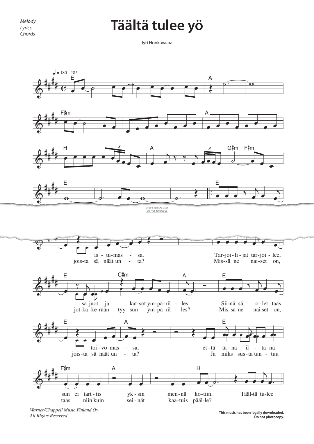 Täältä tulee yö - Sheet Music for Ratsia