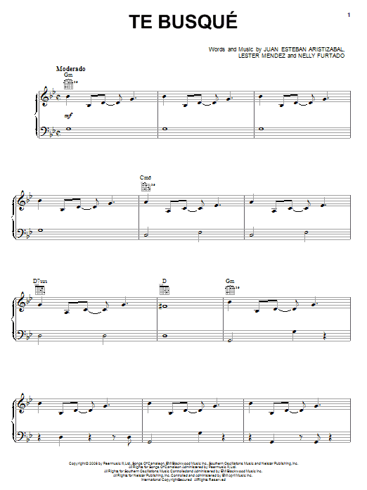 Te Busque (Piano, Vocal & Guitar Chords (Right-Hand Melody))