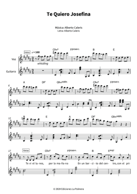 Te Quiero Josefina - Sheet Music for Voice and Guitar Alberto Caleris