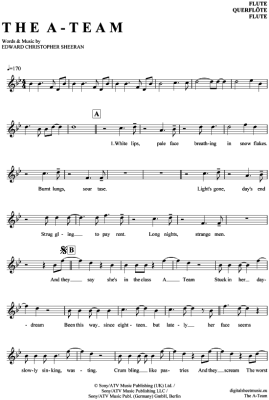 The A-Team - Sheet Music for transverse flute Ed Sheeran