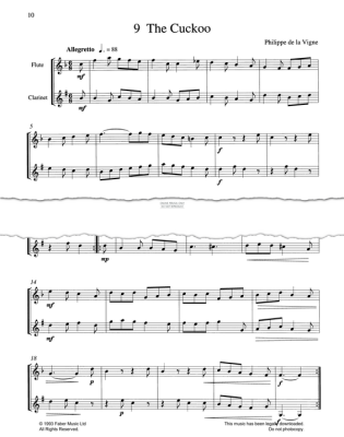 The Cuckoo, composed by Philippe de la Vigne and arranged by Paul Harris for flute and clarinet duet in digital sheet music format.