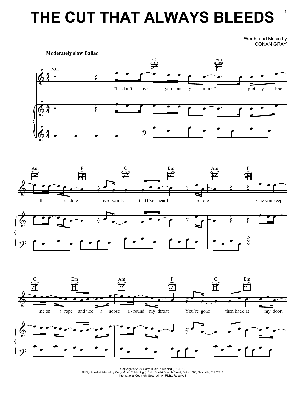 The Cut That Always Bleeds Piano, Vocal & Guitar Chords (Right-Hand Melody)