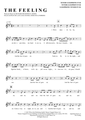 The Feeling - Sheet Music for Tenor Saxophone Lost Frequencies