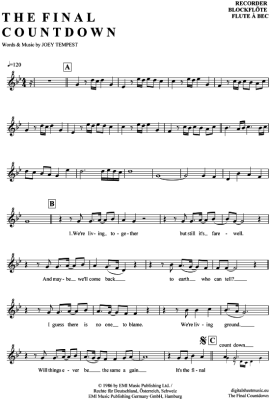 The Final Countdown - Sheet Music for recorder Europe
