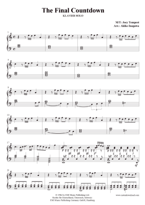 The Final Countdown - Sheet Music for piano solo medium difficulty Europe