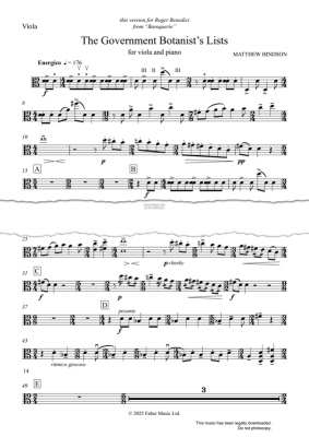 The Government Botanist's Lists from 'Baroquerie', composed by Matthew Hindson for viola with piano accompaniment in digital sheet music format.
