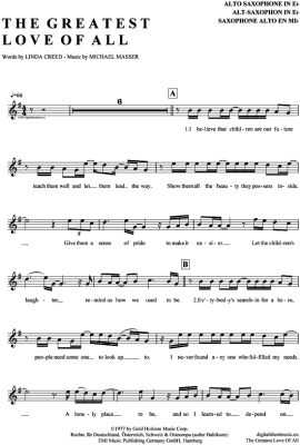 The Greatest Love Of All - Sheet Music for Alto Saxophone Whitney Houston
