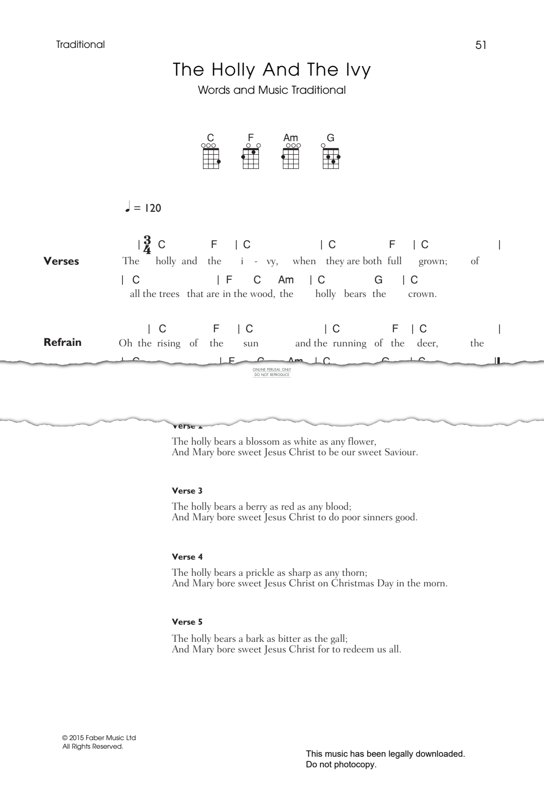 The traditional Christmas song The Holly And The Ivy. Arranged for voice with ukulele chords in digital sheet music format.