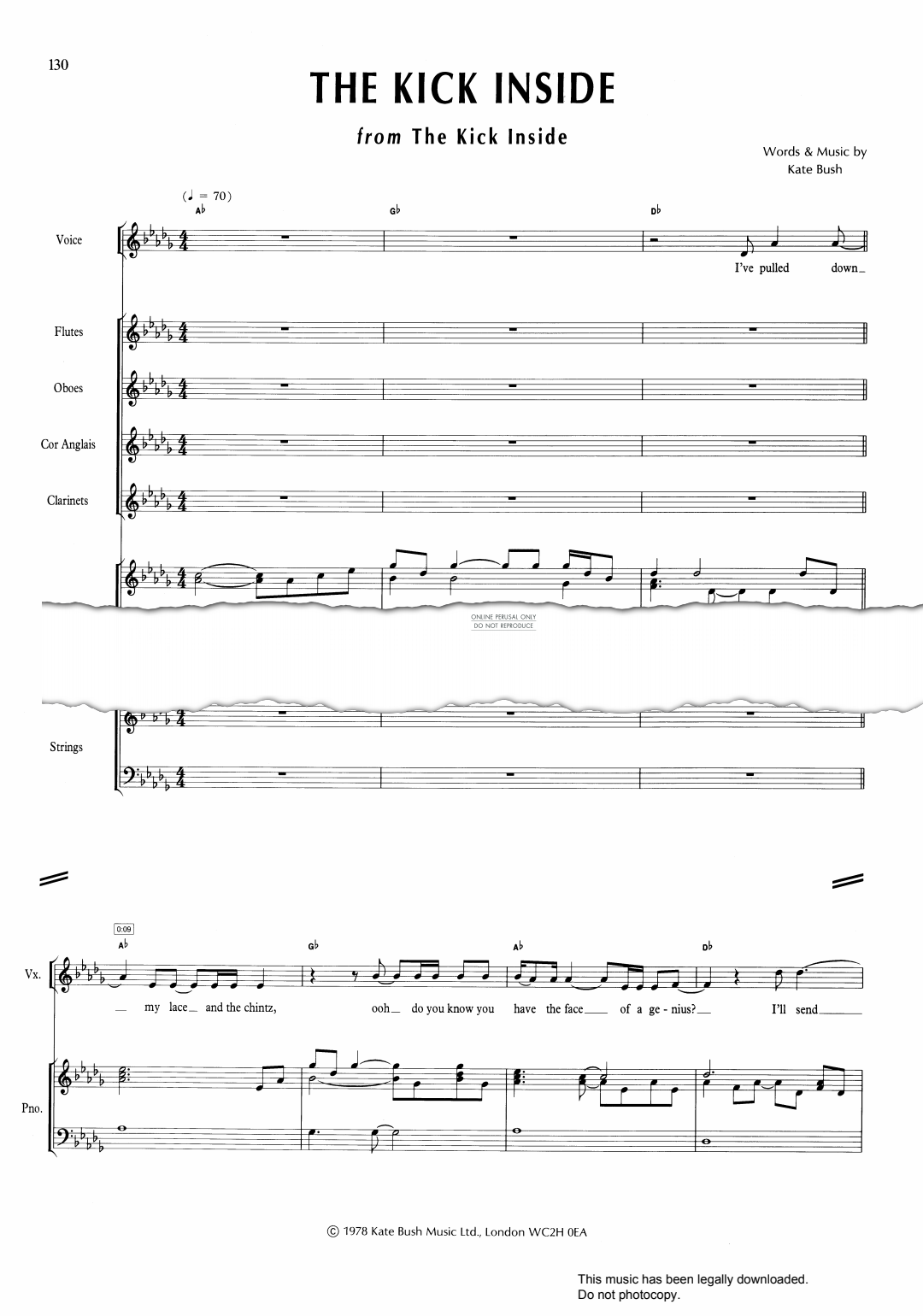 The Kick Inside written and performed by Kate Bush in the key of Db Major arranged as an Off The Record score.