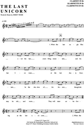 The Last Unicorn - Sheet Music for Clarinet in B-flat Das letzte Einhorn (Filmmusik, 1982)