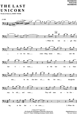The Last Unicorn - Sheet Music for Posaune / Bariton Das letzte Einhorn (Filmmusik, 1982)