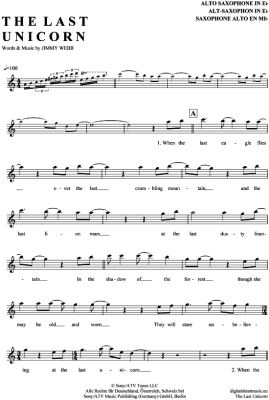 The Last Unicorn - Sheet Music for Alto Saxophone Das letzte Einhorn (Filmmusik, 1982)