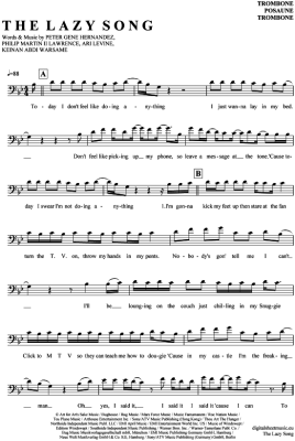 The Lazy Song - Sheet Music for Posaune / Bariton Bruno Mars