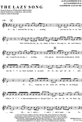 The Lazy Song - Sheet Music for Alto Saxophone Bruno Mars