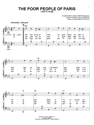 The Poor People Of Paris (Jean's Song) - Sheet Music for Jack Lawrence