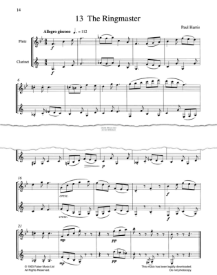 The Ringmaster, composed by Paul Harris and arranged for flute and clarinet duet in digital sheet music format.