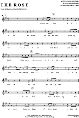 The Rose - Sheet Music for Alto Saxophone Bette Midler