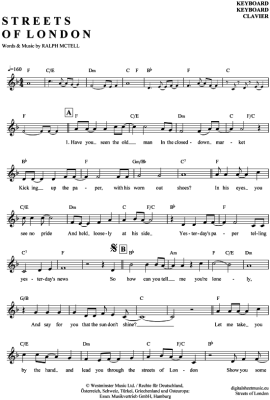 The Streets of London - Sheet Music for Keyboard Ralph McTell