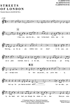 The Streets of London - Sheet Music for Clarinet in B-flat Ralph McTell